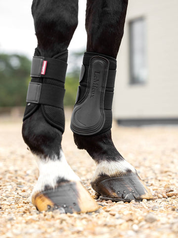 Superb quality incredibly smart boots for schooling and competition. Lightweight with breathable inner lining and protective leather straps and padded brushing area. Suitable for use on front & hind legs.